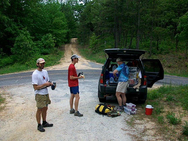 swapping out water bottles for camelbacks for a long, aidless traverse